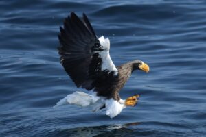 海も青々としておりオオワシの羽やくちばしの色が映えて綺麗でした。