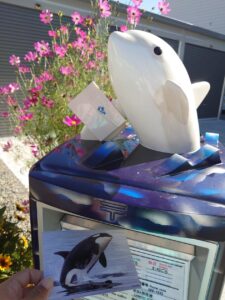 知床ネイチャークルズ事務所脇に設置されたシャチモニュメントのポスト