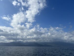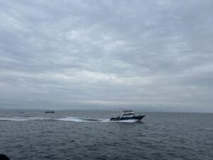 沖合を走ると風も冷たく寒かったですね。 先に出航していた他船からマッコウクジラの情報を貰い浮上を待つことに。