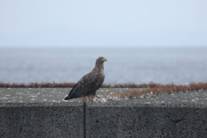 港に戻るとオジロワシが岸壁の上にとまっていました。