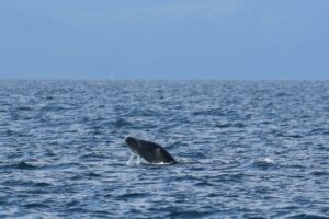 背びれも低く分かりにくいので見つける時には丸い潮吹きが目印になります。