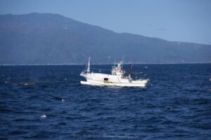 漁船の周りには2頭のマッコウクジラがウロウロしていました。