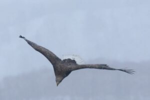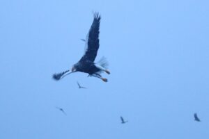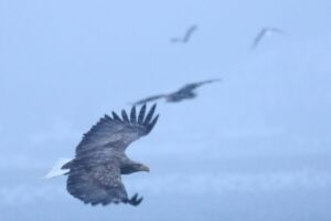 オジロワシが急降下して獲物を狙っていました。