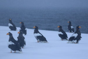 越冬のために羅臼にきているワシたちにはこの寒さはなんてことないのでしょうが、寒そうにも見えますね…。