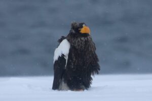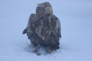 嘴の上に雪をつけているオジロワシもいました。