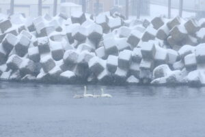川や湖にいるイメージのハクチョウですが羅臼では海にや河口にいることも多いです。