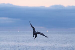高く飛んで旋回し、餌を見つけると急降下して足で掴んでいきます。