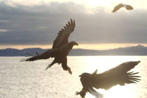 この後、オオワシはオジロワシに魚を取られてしまいました。