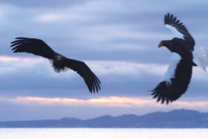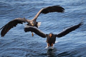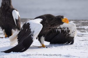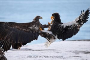 この後、オオワシはオジロワシに魚を取られてしまいました。