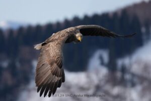 8:30便ではまだ雲が厚い部分もあり、優しい光の中ワシたちを観察。