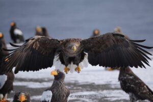 飛んでいるオジロワシの周りもほとんどオオワシ。