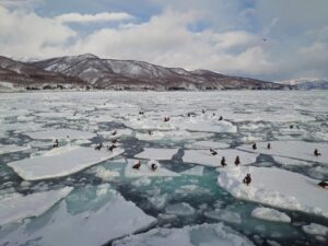 1時間の観光コースでも十分に流氷やわし達を観察することが出来ました。