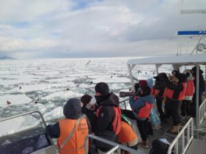 15分ほど走ったところで流氷帯に到着。