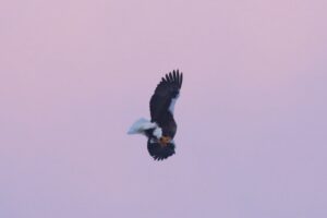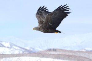 こちらのオオワシはよっぽどお腹を空かせていたのか空中で餌を食べていました。