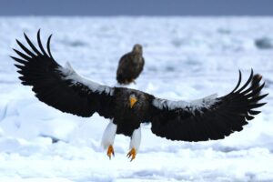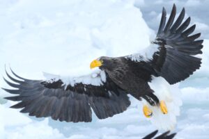 白黒はっきりとした羽のオオワシ。