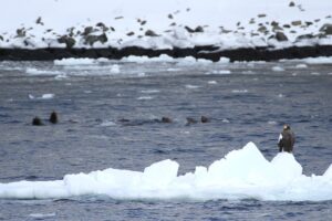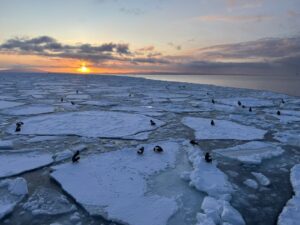 流氷の際を泳ぐ群れを観察することが出来ました。