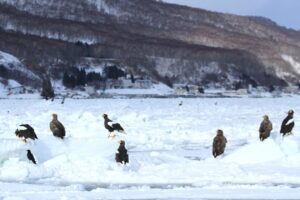 盛り上がった氷はワシ達に人気の様で、みんな各々お気に入りの場所に留まっていました。