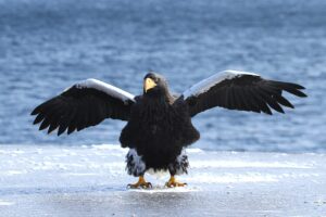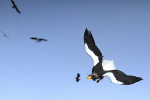オジロワシは大きな翼を広げ船の近くを飛んで行きました。