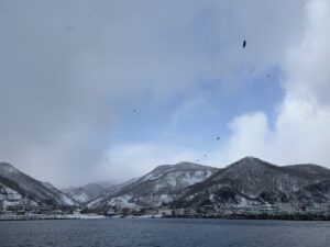 8時半便は青空が見られ、沢山のオオワシやオジロワシを観察。