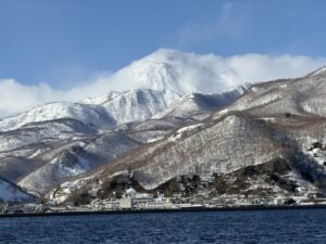 雲に隠れていた知床連山羅臼岳も見え始めています。