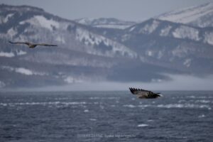 ワシ達はとても目が良いので周りの様子をみて山から餌を求め沖合までやってきます。