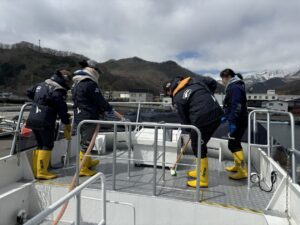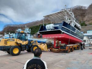 本日は船体整備を終えたEverGreenを陸から海へ下ろす作業も行いました。