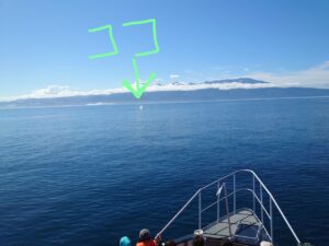 本日も複数頭確認でき、ココにマッコウクジラの潮吹きがあがっています。