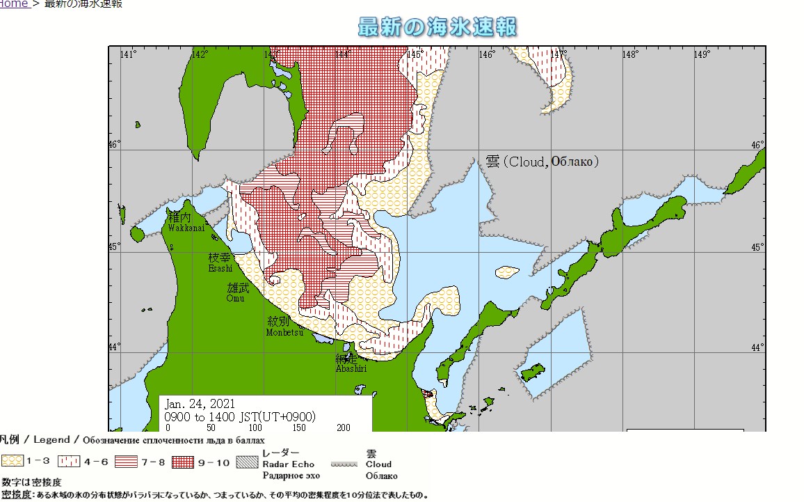 海上保安庁海氷情報センターの情報をリンクさせていただきました。