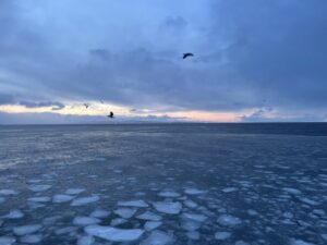 ですが国後側には空も見えており、朝焼けを期待しつつ流氷を目指して出航しました。