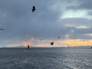 船が進んでいるときは体感気温もぐっと下がるため、とっても寒かったですね…。