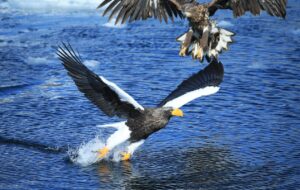 オオワシ達が魚を奪い合い空中戦。