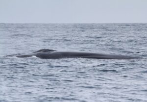 遠くからでも高く縦に上がる潮吹き、そしてゆっくりと背中が見られます。