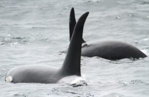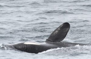 こちらの画像右のオスのシャチは、数年前観察された時に根元から