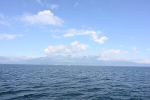 沖から見る知床連山全体が綺麗に見えます。