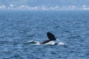 この高い背びれは、シャチを見つける時の大きな手がかりとなります^^