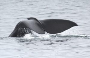 霧に遮られ、遠くで潜ってしまったマッコウクジラ…