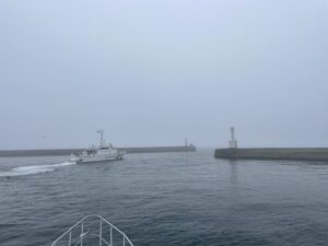 この時期には珍しい霧が停滞しておりましたが、出航する頃には視界も広がり始めました。