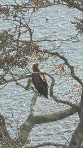 野鳥観察も楽しい場所で、こちらのオジロワシが海を眺め木に佇んでいたり