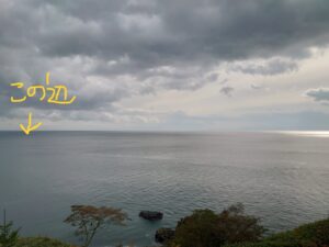 今朝クジラの見える丘公園からは、波の中この辺りにツチクジラの姿を