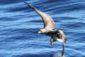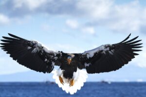 綺麗にぴんと伸びた羽、白黒コントラストが美しいオオワシです。