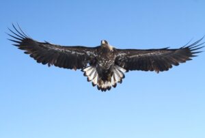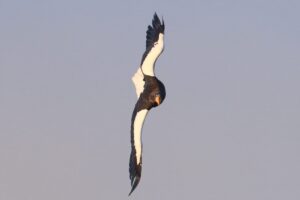 綺麗にぴんと伸びた羽、白黒コントラストが美しいオオワシです。