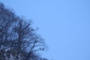 山の方をみるとワシたちの姿がありました。普段は山の木々に留まっていることが多いです。