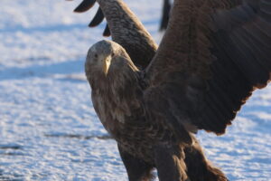 キリっと睨みをきかせオオワシが降り立つ姿、圧倒されますね。