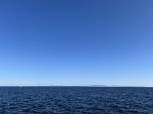 沖合も雲一つない青空!国後島も綺麗に見えていました。