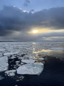 帰りにもバラバラになった流氷がちらばっていました。