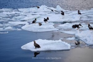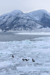 こちらの氷の上にはオオワシが集まっていました。
