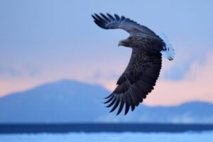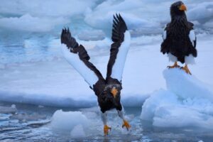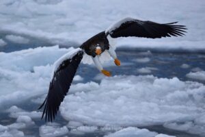 大人のオオワシは白黒はっきりしている模様がとても美しいです。