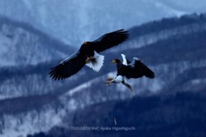 このオオワシは圧に負けて魚を自ら手放しました。