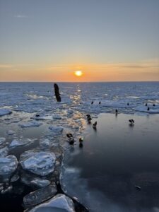 流氷帯には15分ほどで到達。8:30の便もゆっくりとワシを観察することが出来ました。