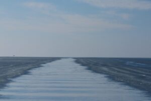 海面は結氷しており船が走った後は道のようになっていました。